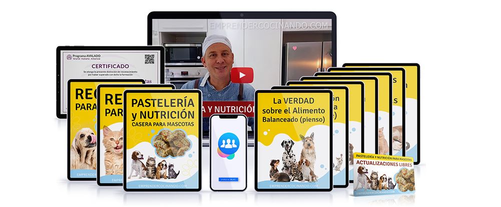 - Lecciones profesionales explicadas por un chef experto en pastelería y nutrición para mascotas.